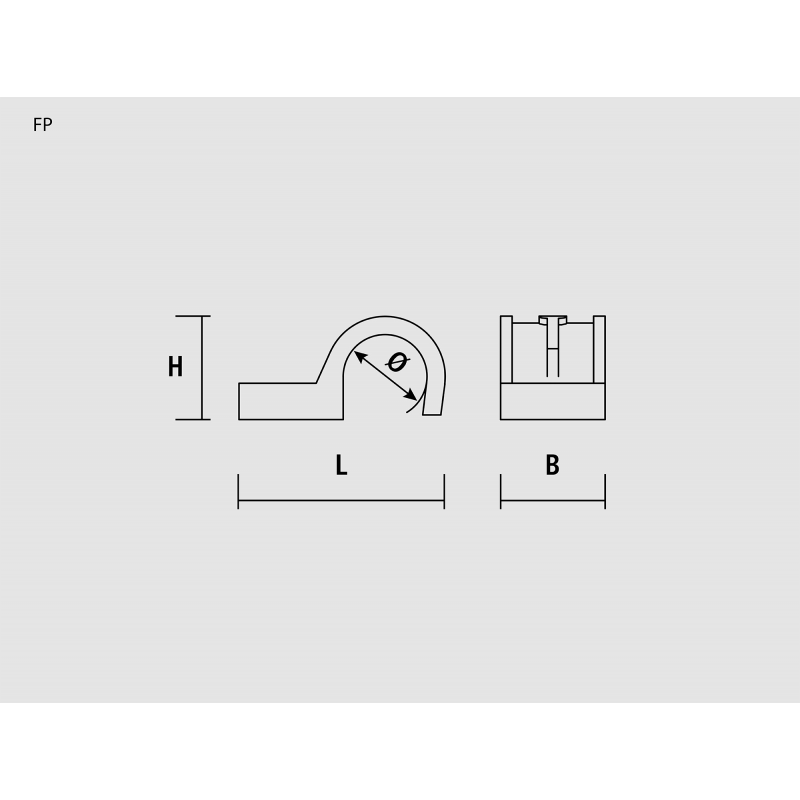With the plastic conduit clip FP 16, 3 different pipe diameters can be installed. The FP can easily be clipped onto the pipe and then attached to the surface with a nail gun.