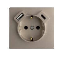 Vāciņš rozetei ar zemējumu. ar USB C + C. Logus 90 sērija. ziloņkaula