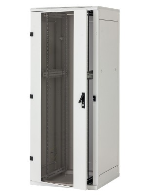 RZA 19* Serverskapis 27Ux600x600mm. stikla durvis / metāla panelis. 400kg. Pelēks