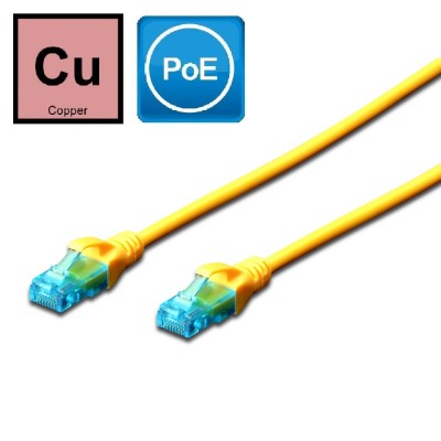 The DIGITUS® Category 5e Class D patch cords are manufactured and tested to the ISO/IEC 11801 and DIN EN 50173 Category 5e specifications. They will guarantee the installed cabling system is compliant with the ISO - EN channel specification requirements and will provide optimum performance levels of DIGITUS® Category 5e cabling. The performance is tested up to 100 MHz inclusive performance characteristics such as near end cross talk (“NEXT”). DIGITUS® patch cords are designed and produced to fulfill the highest requirements of various application areas in full volume. Each cable is fitted with a molded boot which comes with kink protection and strain relief. Furthermore the boot is equipped with a latch protection that prevents the latching lever against breaking.You can easily identify the Category 5e, because of the transparent blue colored connector.