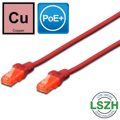 The DIGITUS® Category 6 Class E patch cords are manufactured and tested to the ISO/IEC 11801 and DIN EN 50173 Category 6 specifications. They will guarantee the installed cabling system is compliant with the ISO - EN channel specification requirements and will provide optimum performance levels of DIGITUS® Category 6 cabling. The performance is tested up to 250 MHz inclusive performance characteristics such as near end cross talk (“NEXT”). DIGITUS® patch cords are designed and produced to fulfill the highest requirements of various application areas in full volume. Each cable is fitted with a molded boot which comes with kink protection and strain relief. Furthermore the boot is equipped with a latch protection that prevents the latching lever against breaking. You can easily identify the Category 6, because of the transparent red colored connector.