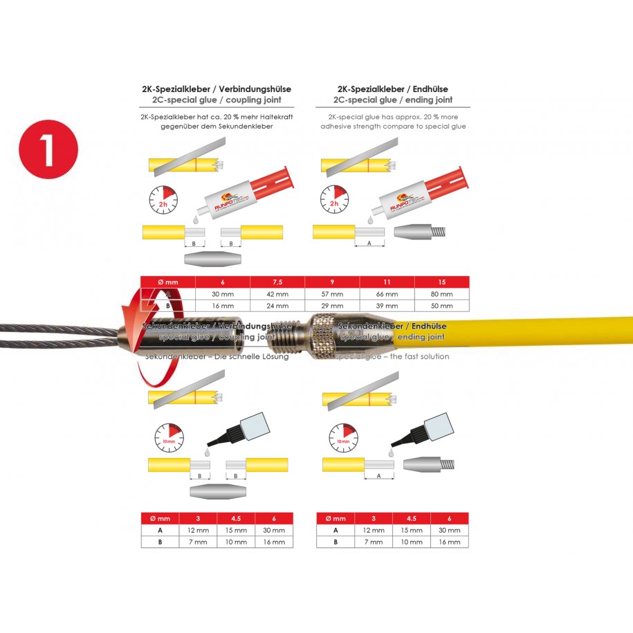 Scope of supply: 1 x Profi-Set fiberglass rod Ø 4,5 mm, Length: 60 m, stainless steel ending joint on both sides (start/end), 1 x steel reel Ø 330 mm incl. double run-out system, extendable feet and storage compartment, additional accessories: 1 x RUNPOGLIDER with thread and swivel, 2 x ending joint, 1 x coupling joint, 1 x shackle, 1 x special glue, 1 x roller