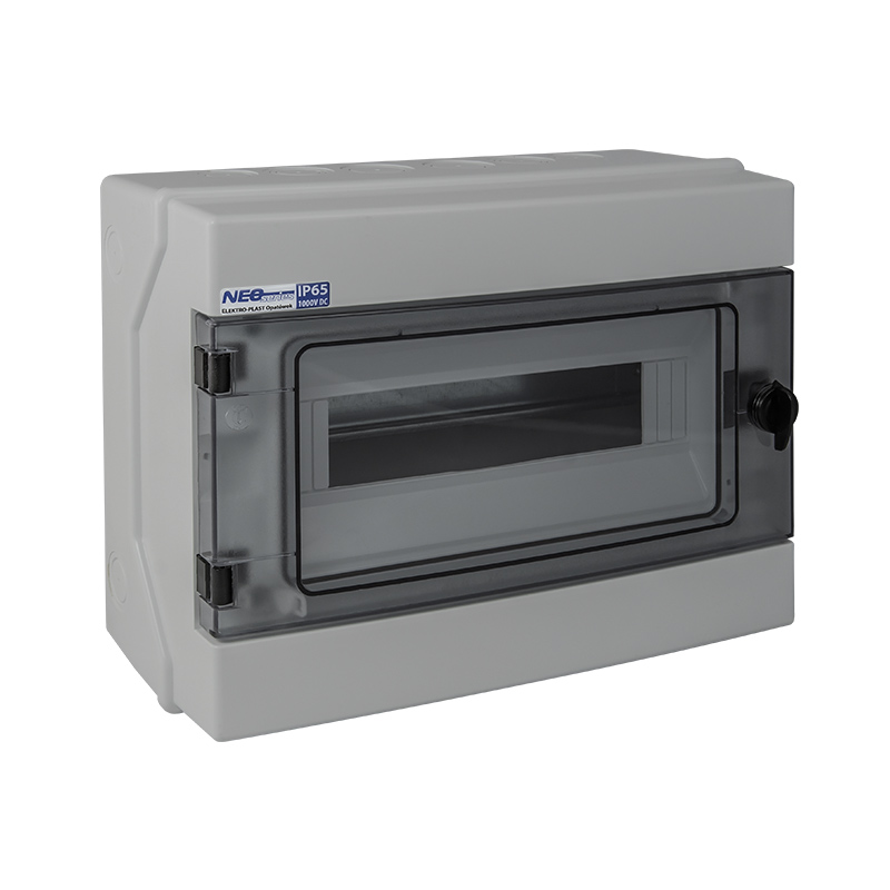 Hermetic distribution board RH-12S. surface mounting. 12mod (1x12). IP65. 330x260x138mm. gray. transparent door. lockable (lock not included)