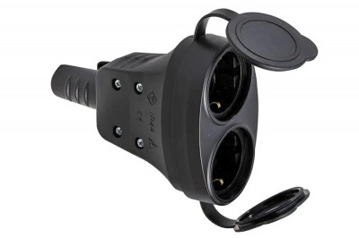 Double rubber socket. 16A/250V. IP44. black