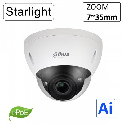 5MP Pro AI (zoom 2.7~13.5mm F1.5) IR 80m / H265+ / IP67 MicroSD / ePoE 800m. / Tripwire Intrusion. Face Image Capture. Face Attributes. Metadata. People Counting / 3D DNR / @39.5W / Metal Dome / IP Vi