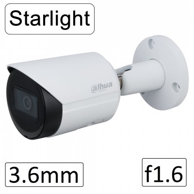 1 / 2.9 *6Mpx Starvis CMOS. 20fps @ 6MP (3072x2048). 25 / 30fps @ 4MP (2688x1520). 2.8mm fixed focal length. Max. IR coverage: 30m. IP67. IK10. PoE