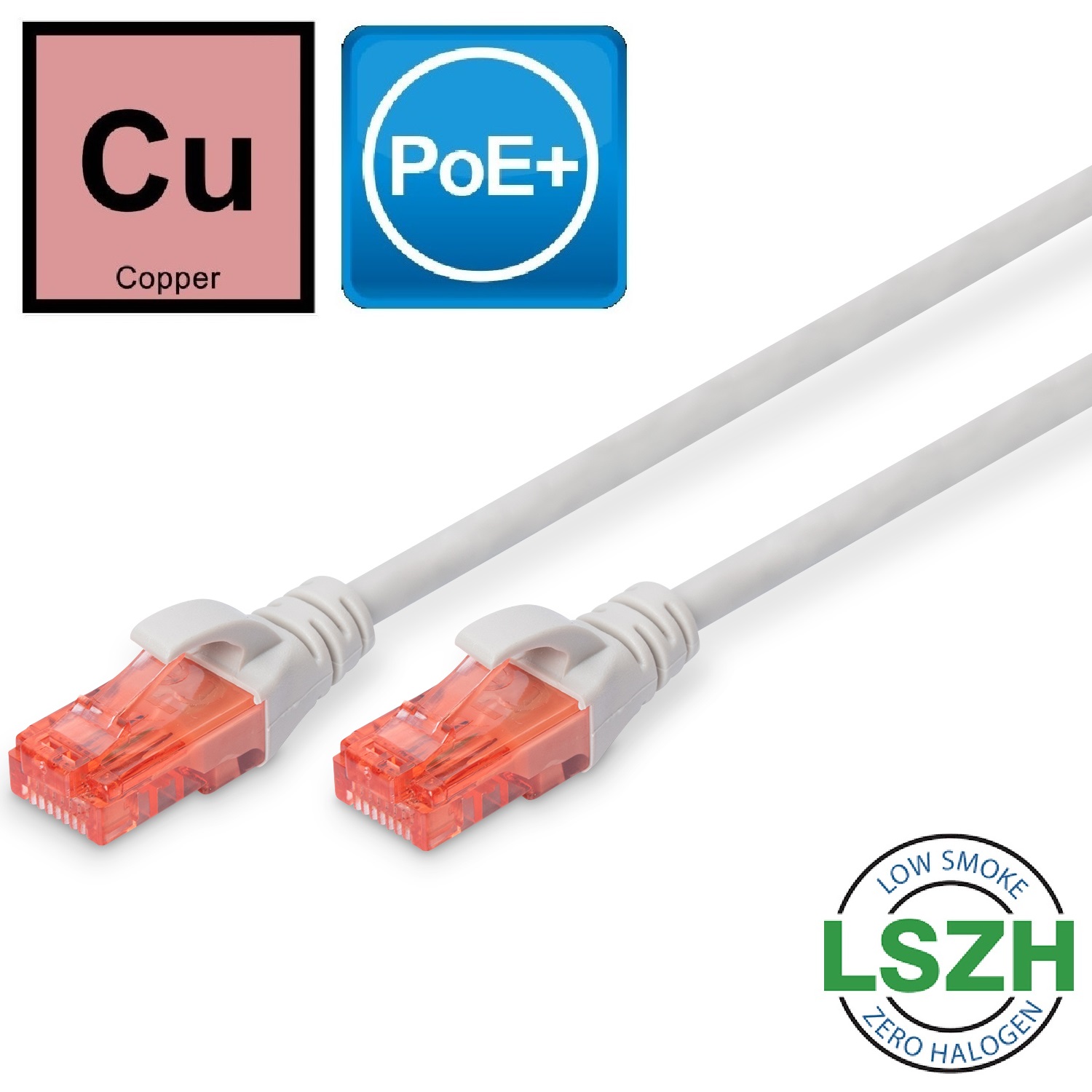 The DIGITUS® Category 6 Class E patch cords are manufactured and tested to the ISO/IEC 11801 and DIN EN 50173 Category 6 specifications. They will guarantee the installed cabling system is compliant with the ISO - EN channel specification requirements and will provide optimum performance levels of DIGITUS® Category 6 cabling. The performance is tested up to 250 MHz inclusive performance characteristics such as near end cross talk (“NEXT”). DIGITUS® patch cords are designed and produced to fulfill the highest requirements of various application areas in full volume. Each cable is fitted with a molded boot which comes with kink protection and strain relief. Furthermore the boot is equipped with a latch protection that prevents the latching lever against breaking. You can easily identify the Category 6, because of the transparent red colored connector.