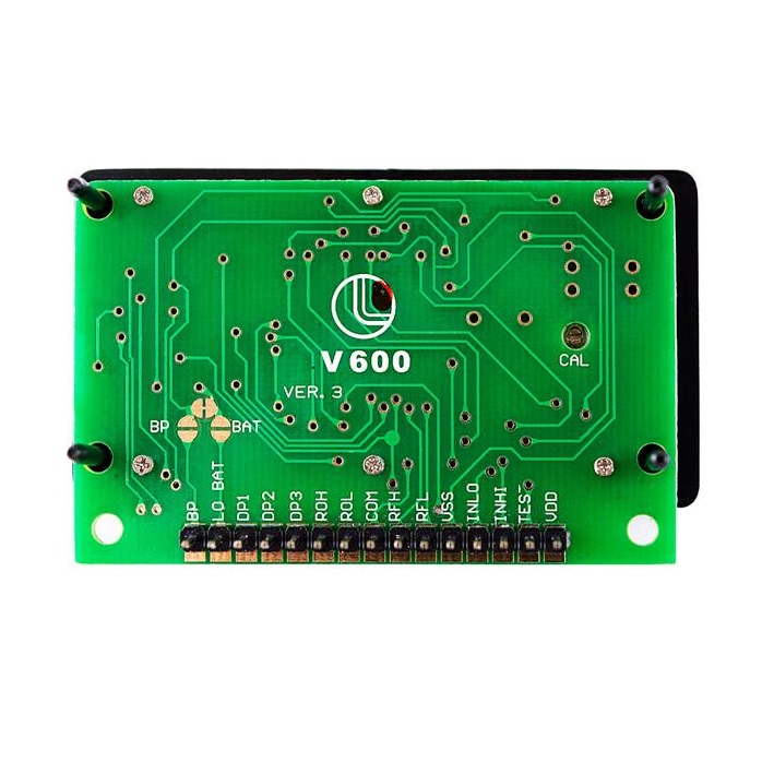 This exceptionally low cost panel meter features a 3½ digit LCD with 15mm (0.6-) digit height. With 200mV full scale reading, auto-zero, auto-polarity and user selectable decimal points, this meter can be panel mounted using the snap-in bezel supplied. The display features a low battery warning annunciator, which can be driven by external circuitry. The V 600 is a popular part, normally stocked in high quantity and suitable for new designs and is also available in even lower cost packs of 10.
