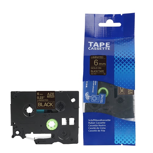 Standarta laminēta uzlīmju lente. 6mm. zelts uz melna. Standard Adhesive (analoga)