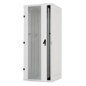 The welded free standing cabinet with maximal load 400 kg, made from steel, IP 20. Ventilation slots on the side of cabinet roof and bottom. Cable entries and fan units openings with breakout-type blanking panels in the top and bottom part of the cabinet. All parts grounded, central earthing point preinstalled.Two pairs (from the cabinet depth 900 mm three pairs) 19“ vertical mounting rails, galvanized, adjustable. All installation units marked on the mounting rails and numbered in the both directions (up and down).