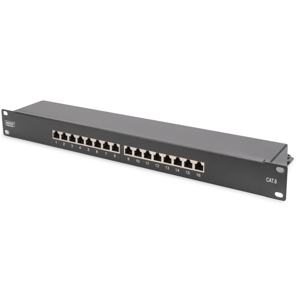 The shielded CAT 6 Patch Panel from DIGITUS® is available as 16- or 24-port version. It is manufactured acc. to Link Performance Class E, for up to 250 MHz, EN 50173 and ISO/IEC 11801 and complies with the 802.3at PoE+and the 802.3af PoE standard. The housing is made of 1.5 mm galvanized cold-rolled steel and is therefore perfectly suitable for 19- rack mounting.