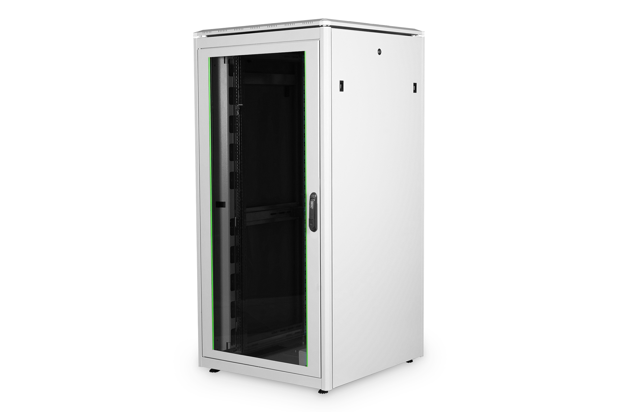 GTN 19 * Palvelinkaappi 32U × 800 × 800mm. lasiovi / halkaistu metalli. litteä. 600kg. harmaa