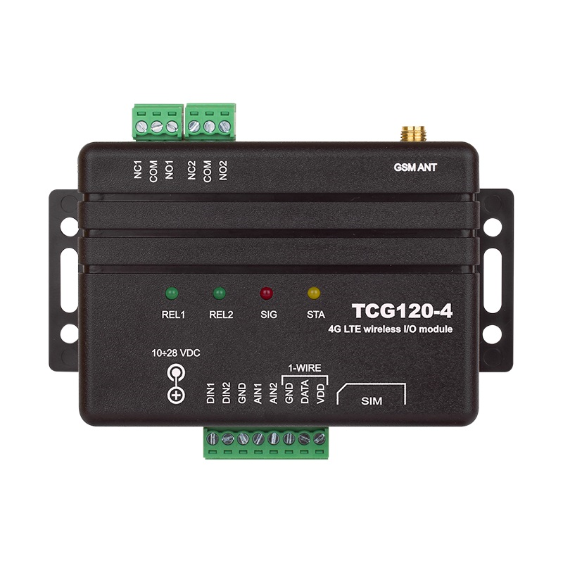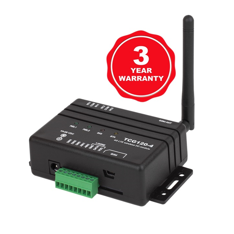 TCG120-4 is a 4G LTE wireless I/O module. In addition to the 4G, the device also supports 3G and GSM-GPRS, which makes it a good choice of a last-mile module that can communicate from a point with any mobile network coverage. The choice of communication technology is automatic by default but can be fixed during the setup.