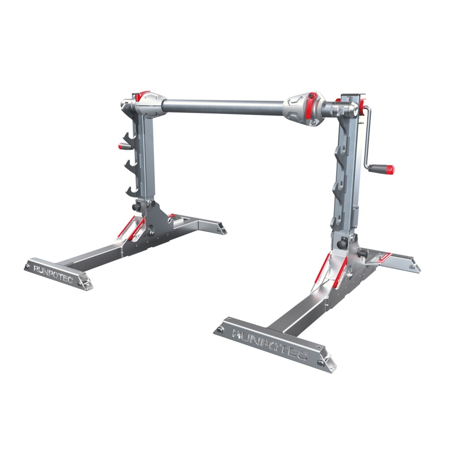 Scope of supply: 1 x RUNPOLIFTER 4500 (1 x support right, 1 x support left), 1 x drum shaft 1350 mm, 2 x centring cones with quick release fastener