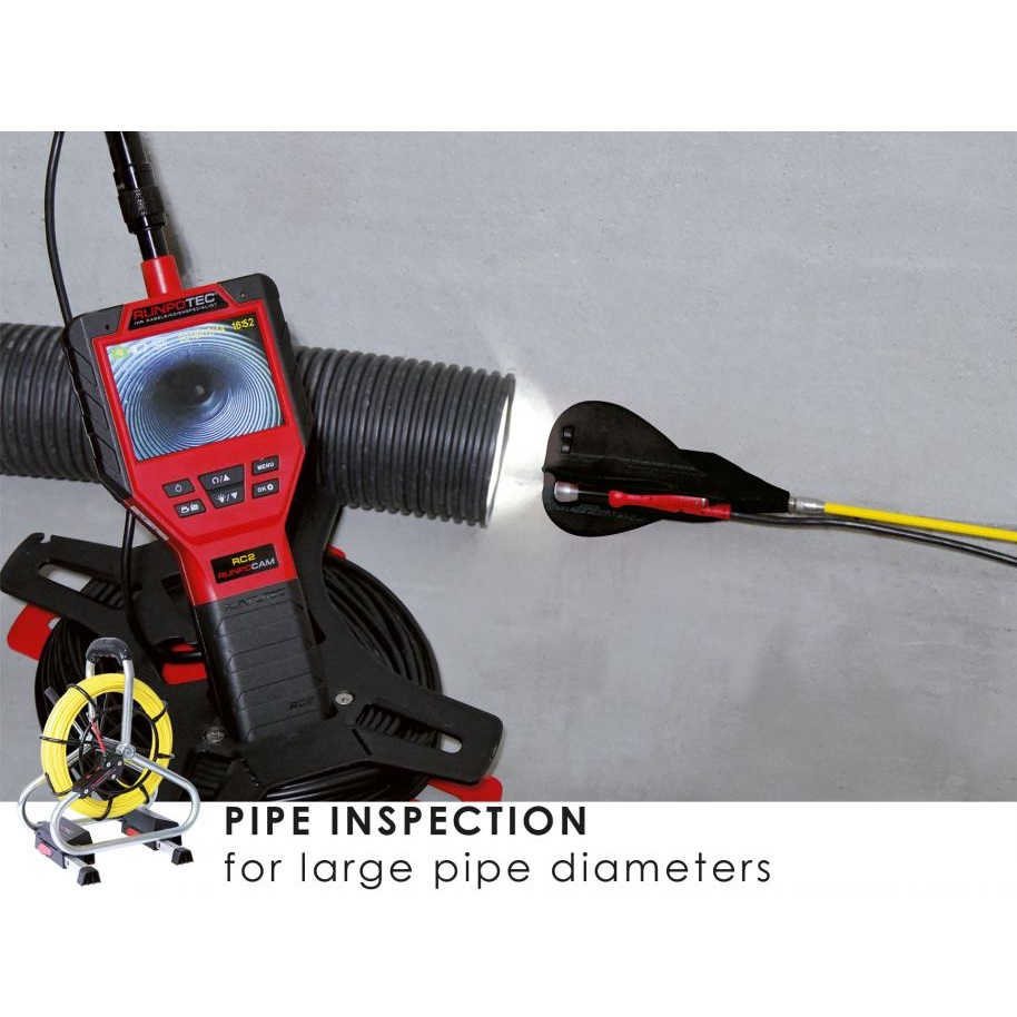 for pipe inspection Ш 14mm/0,5512 in. (inner), also for larger pipe cross-sections (ventilation systems, drainage systems, etc.), manhole, underfloor ducts, maintenance-/system inspections, memory function/documented evidendce (photo, video, audio)
