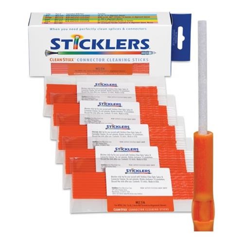 For best results, wet/dry clean using Sticklers™ Fiber Optic Connector Cleaning Fluid that cleans effectively, dissipates static and leaves no residue