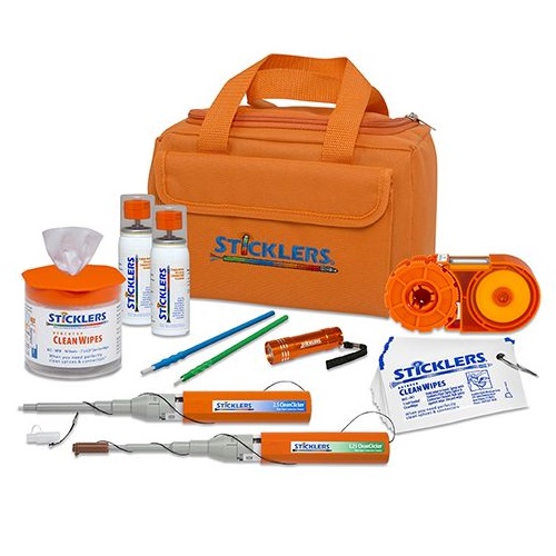 Heavy-Duty Fibre Optic Cleaning Kit Kit Includes: • 1.25mm and 2.5mm CLEANCLICKER® 750 • Cassette CleanClicker™ • Two cans of fibre Optic Splice - Connector Cleaner® cleaning fluid • CleanWipes™ 90 benchtop wipes and 25 outdoor CleanWipes™ • CLEANSTIXX™ commerical combo box with thirty 2.5mm sticks and twenty 1.25mm sticks