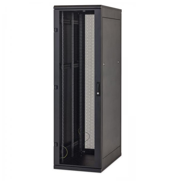 The welded free standing cabinet with maximal load 400 kg, made from steel, IP 20. Ventilation slots on the side of cabinet roof and bottom. Cable entries and fan units openings with breakout-type blanking panels in the top and bottom part of the cabinet. All parts grounded, central earthing point preinstalled.Two pairs (from the cabinet depth 900 mm three pairs) 19“ vertical mounting rails, galvanized, adjustable. All installation units marked on the mounting rails and numbered in the both directions (up and down).