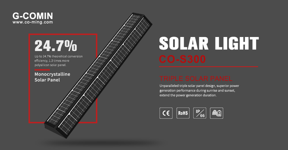 Mwangaza wa jua LED30W 3052lm 2700-6500K IP66 3-8m inayoweza kupangwa na paneli ya 3-dimensional 804x212x102mm
