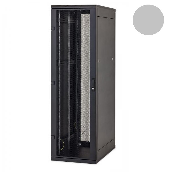The welded free standing cabinet with maximal load 400 kg, made from steel, IP 20. Ventilation slots on the side of cabinet roof and bottom. Cable entries and fan units openings with breakout-type blanking panels in the top and bottom part of the cabinet. All parts grounded, central earthing point preinstalled.Two pairs (from the cabinet depth 900 mm three pairs) 19“ vertical mounting rails, galvanized, adjustable. All installation units marked on the mounting rails and numbered in the both directions (up and down).