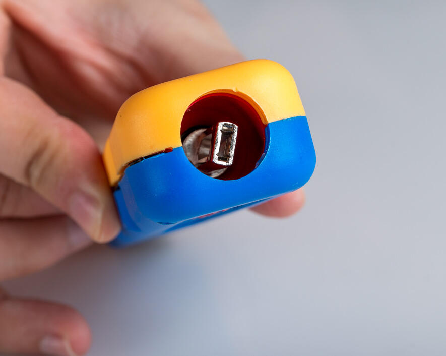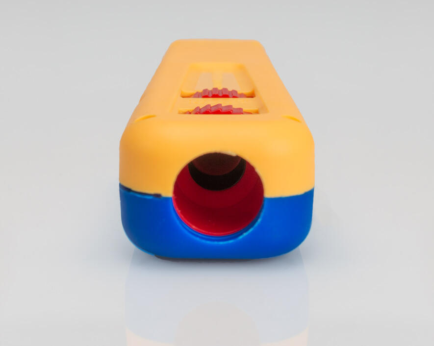 Color coded body is half yellow (cut side) and half blue for ease of use