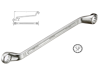 Topeltrõnga võti. Valmistatud kroom-vanaadiumi sulamist. Kroomitud katmine. DIN 838 / ISO 1085
