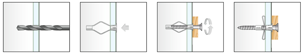Apolo MEA dobuma stiprinājuma HR ir piemērots stiprinājumiem pie dēļiem, piemēram, ģipškartona vai skaidu plātnēm. Zemu cenu fiksēšanas sistēma vieglai lietošanai. Uzstādīšana ar koka skrūvēm vai skaidu plākšņu skrūvēm vītņotās daļas dēļ spraudņa vietā. Ieskrūvējot skrūvi, abas rokas izplešas aiz dēļa un izveido formas aizbāzni.