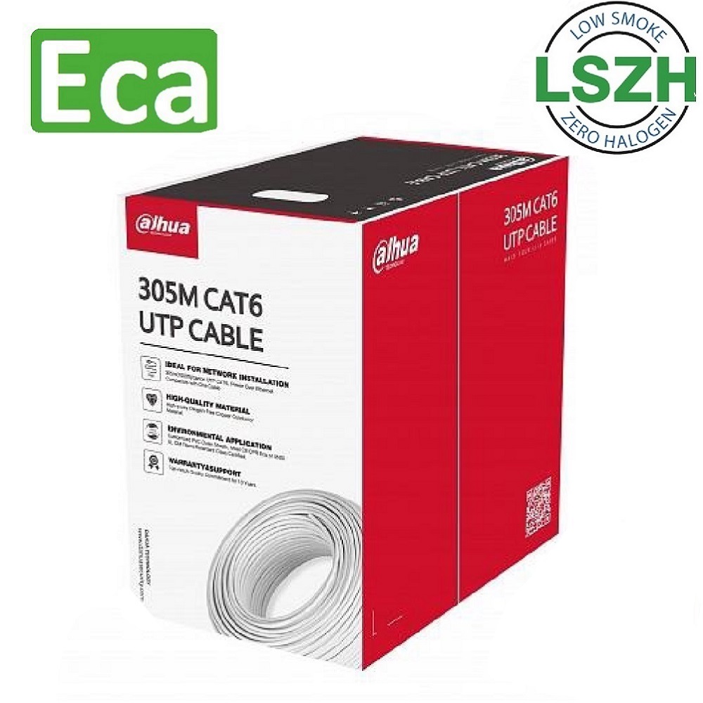 PFM923I-6UN-C 305m UTP CAT6 LSZH CPR E Cable - 305 m (1000 ft)/carton UTP CAT6, power over Ethernet, compatible with one cable - High-purity oxygen-free copper conductor - Customized PVC outer sheath; CE CPR Eca flame retardant class certified - 10-year warranty