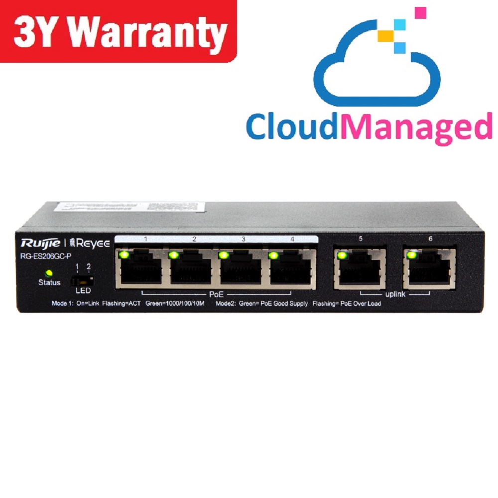 6-Port gigabit cloud managed switch with 4 PoE+ ports