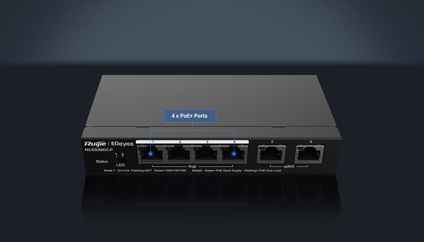 Ports 6 x 10/100/1000Base-T, 4 x PoE+ ports