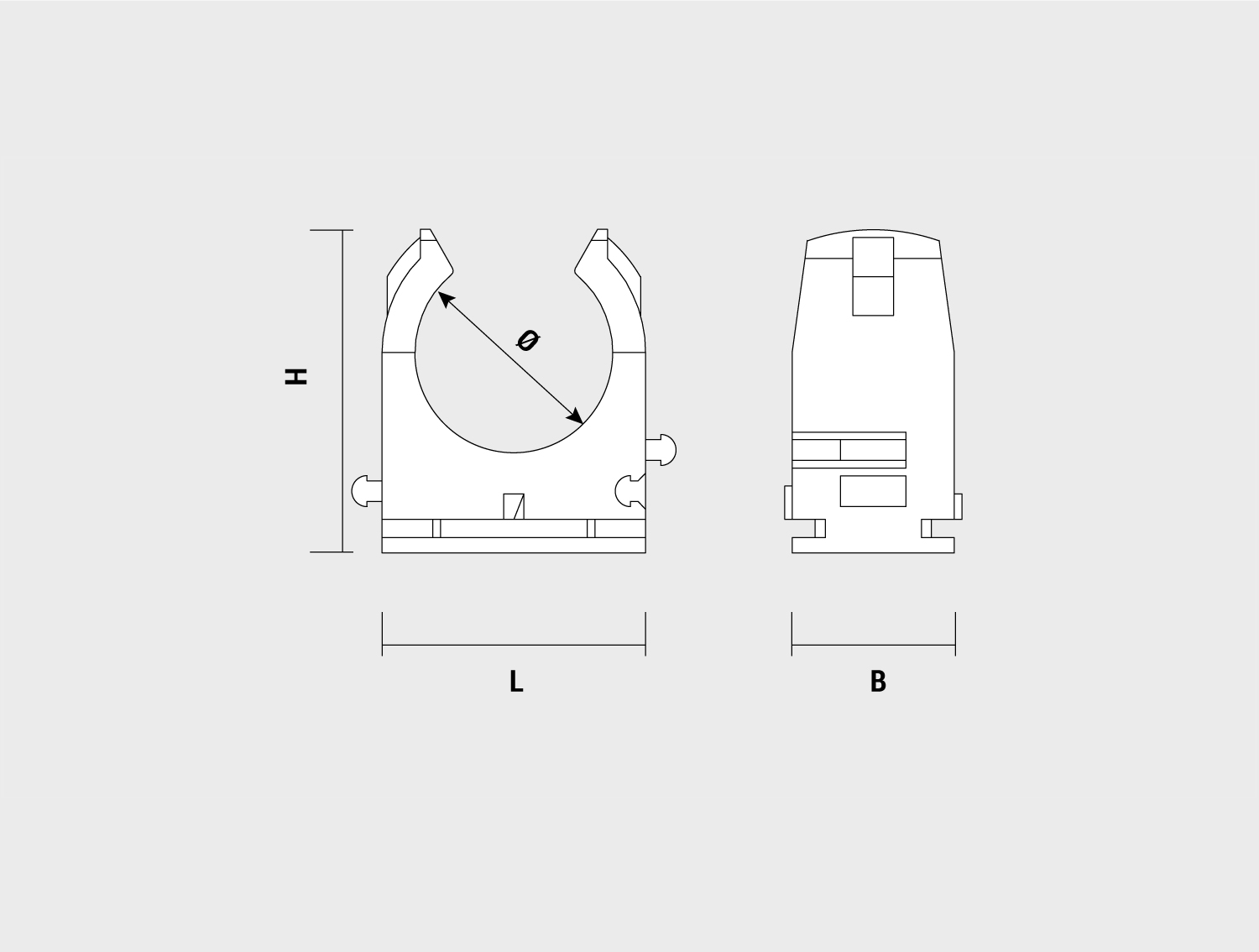 Atvērtā multiclip neilona skava MC 18, pelēka, ļauj piestiprināt vairākus klipus vienu pie otra. Var uzstādīt ar kanālu 20x10 tipa E2000PB, E2000PG y 1000PVC, nagu spraudni NP5x35, neilona spraudni FX O6 un skrūvi O4,5x35/45. Cauruma pamatnes diametrs 4,5 mm
