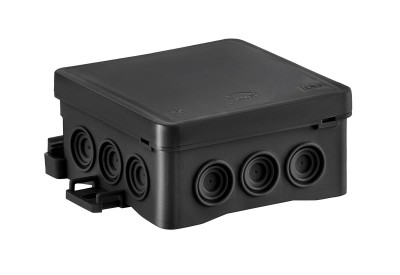 Puszka przyłączeniowa 80x45x41mm | IP54 | czarna | 8 wejść | V8