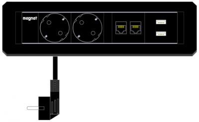 Iebūvējama rozete Magnat-Frame. 2x 230V. 2x RJ45. 2x USB 2.0. kabelis 3m. melna