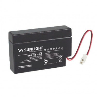 12V akumulātors 0.7Ah. Design Life - 10 gadi. 96x25x62mm. 0.33kg SUNLIGHT