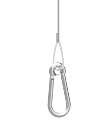 -Pāris ar fiksāciju pēc izvēles piestiprināšanai pie griestu materiāla. Izmantojiet karabīnes, lai piesprādzētu tieši uz: kabeļu groziem.