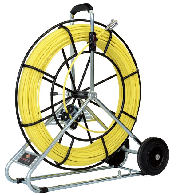 Stikla šķiedras stienis Ø 9 mm, ieskaitot riteņu tērauda būru - RUNPOTEC RTG Ø 12 mm vītne ar izturīgu tērauda būru (cinkots / ar pulvera pārklājumu) Ø 730 mm ar jaunu, divkāršu izplūdes sistēmu (automātiska iztecēšanas bremze un ātra izeja), papildu bloķēšanas bremzes. Iekļautie piederumi: 1 x važas - varai ir arī cits vītne RTG Ø 6 mm, lai savienotu dažādus palaišanas vārpstas, piemēram, unikālos RUNPOSTICKS, kabeļu satvērējus vai pārbaudes kameras. Stiklplasta stieņa stiepes slodze 4500 kg, kopējā stiepes slodze 460 kg. Ideāli piemērots cauruļvada diametram 60–200 mm.