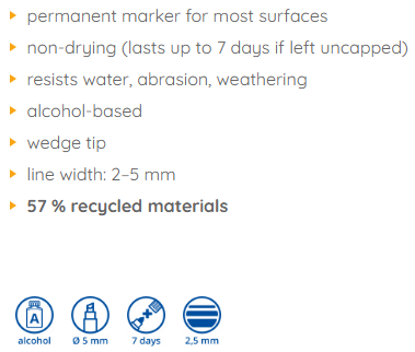 < ATPAKAĻMARĶĒŠANAS MATERIĀLI  >  KRĀSAS / TINTES MARĶIERI  >  PERMANENTIE TINTES MARĶIERI