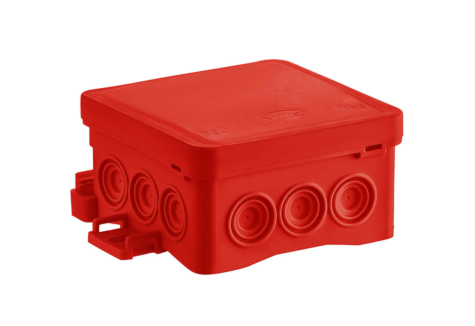 Kytkentärasia 75x75x40mm | IP54 | punainen | 12 x Ø16 läpivientiä | NS5 (asennettavissa HNS-koukkuihin)