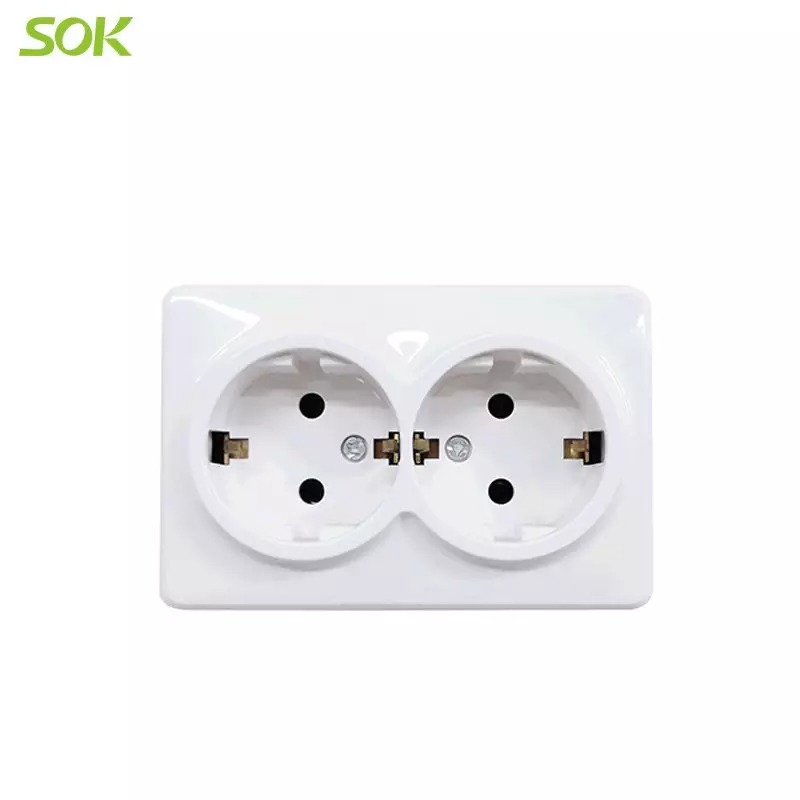 Kaksinkertainen pinta-asennettava pistorasia. 16A - 250V. IP44. valkoinen