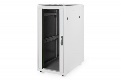 GTN 19* Serverskapis 26U×600×600mm. stikla durvis / dalītas metāla. salikts. 600kg. Pelēks