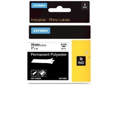 Maandiko ya polyester ya kudumu ya Rhino. 24mm x 5.5m. Nyeusi kwa uwazi (analogue)