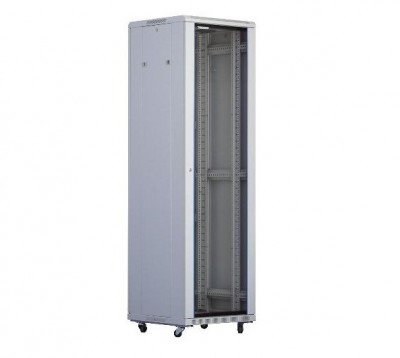G7 19* Serverskapis 22Ux600x600mm. stikla durvis / metāla durvis. flat-pack. 800kg. Pelēks