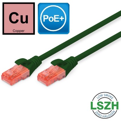 Patch cable Cat.6 UTP Cu LSZH Green 3m PoE +