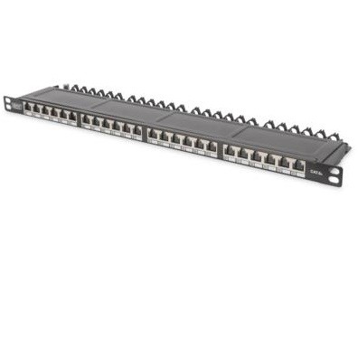 Pöytäkoneen EA Patch Panel Cat.6A. 12-porttinen RJ45. 8P8C. LSA. musta