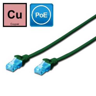Patch kabelis Cat.5e UTP PVC Zaļš 1 m. Cu