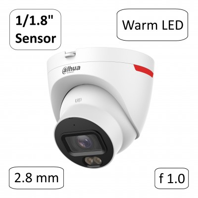 4MP Eyebal. 1/1.8* WizColor (fix 2.8mm 112° F1.0) Warm LED 30m / Buit-in MIC / H265+ / IP67 MicroSD